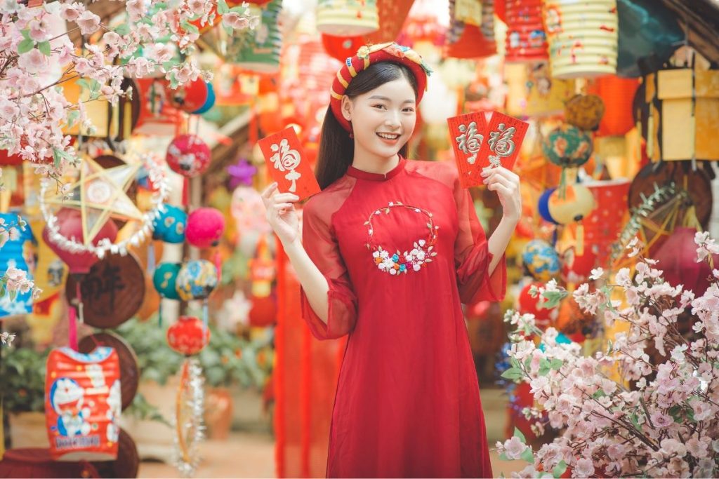 Les habitants portent généralement des vêtements rouges pour rendre visite à leurs parents et amis, car ils veulent apporter chance et bonheur aux personnes qui leur sont chères. L’argent de la chance est placé dans une enveloppe rouge, puis donné aux enfants ou aux personnes âgées pour leur souhaiter la meilleure année possible. La couleur rouge est également utilisée lors des fêtes de mariage.