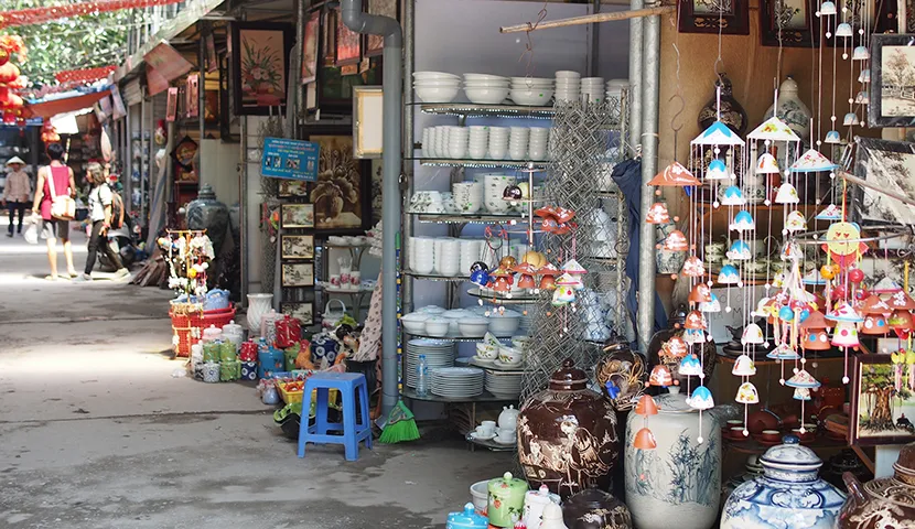 Marché de la poterie de Bat Trang – Un endroit où acheter divers articles en céramiqueLe marché de la poterie est un endroit idéal pour acheter des cadeaux-souvenirs abordables et originaux. Les kiosques du marché de la céramique proposent une grande variété d’articles en céramique exquis, notamment des objets d’art décoratif, des tasses, des plats, des souvenirs et des objets de culte. Tous les produits sont fabriqués par des artisans qualifiés. Le marché comprend également de petites cours de poterie où vous pouvez observer et filmer le processus de fabrication des céramiques.